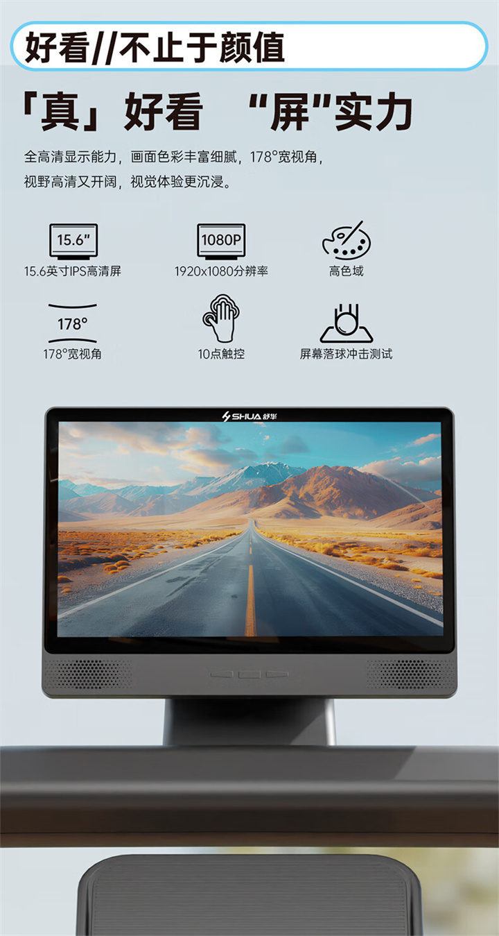 AG庄闲推荐健身器材-舒华商用电动跑步机SH-T6500拥有10.1寸IPS高清触摸屏、Z型动感时尚外观设计、70×150mm精钢立柱机身、F级高效静音马达、520mm商用豪华跑带和35mm双层全跑台减震跑板等优势,让您享受科学跑步。
