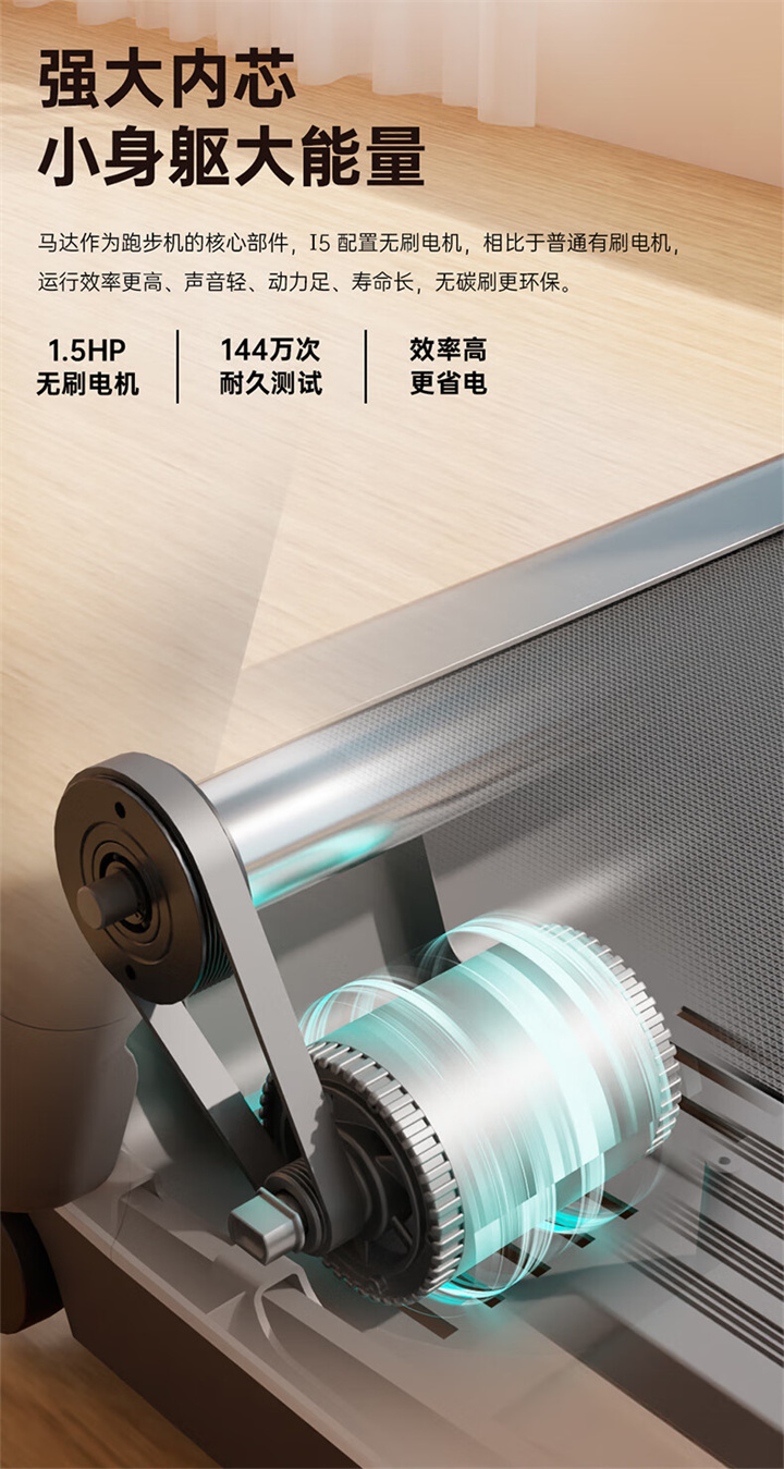 舒华家用跑步机SH-T5100持续马力达1.25HP,具有500×1350mm的跑台,运用无线心率接收模块监测心率,运用6位硅胶减震设计,最大承重是126kg,可以满足大多数家庭的使用。